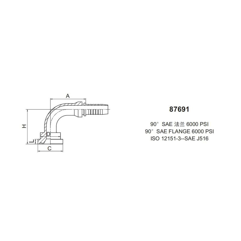 扣压式接头87691 90° SAE 法兰(flange)6000 psi